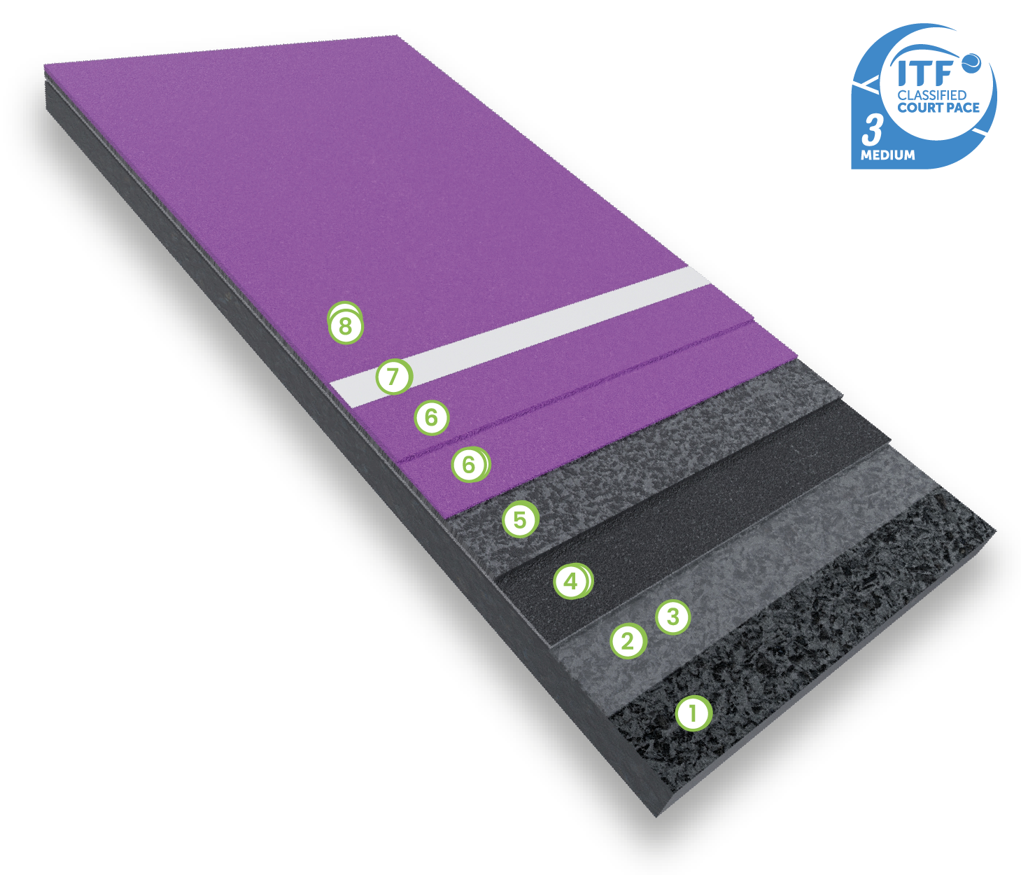 The ACRYFLEX T series is the most innovative and ITF's No. 3 medium speed category system. Difference from Cushion system; Resurfacer, Cushion and Precoat components are extremely light density and ultra soft. This feature gives the system more flexibility and savings in consumption. It also provides 35% more application thickness compared to other systems.