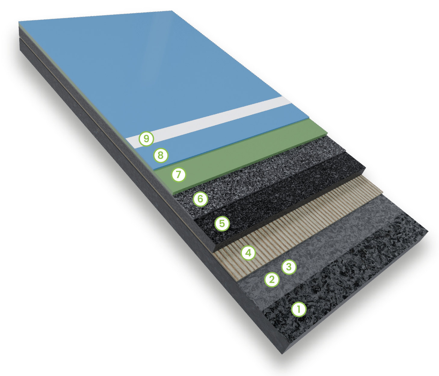 The system consists of ready-made prefabricated rubber roller + PU components in various thicknesses. Our standard system is 8mm SBR+ 2mm PU BS EN 14904:2006 approved system. L'unicflex PU Indoor keeps the game performance at the maximum level on basketball, volleyball and handball field floors. It is a long-lasting sports flooring system with low maintenance costs.